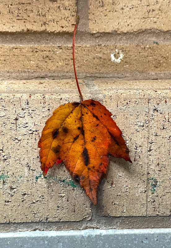 While adjusting Christmas lights outside, I noticed this colorful gift from our maple tree by our doorstep. It seemed a fitting symbol of this season of giving.