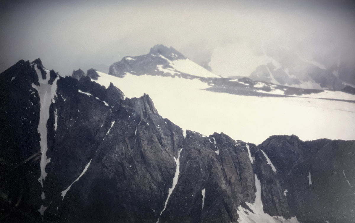 Charlie Love and I set out in my Piper Clipper to get pictures of the Knife Point Glacier in the mid 1980’s. He was a geologist at Rock Springs Community College and was studying the retreat of the glacier. It was September, and this was the last chance we had to get pictures before winter’s snows had hidden its margins.