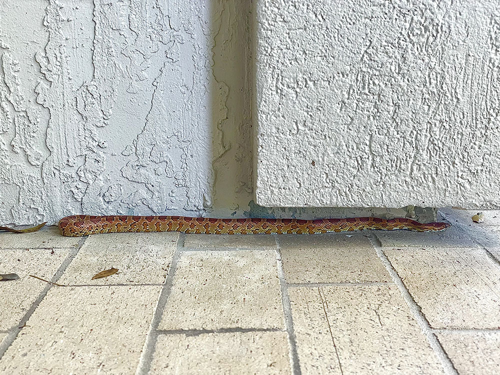 We had a surprise visitor to our front door. It didn’t ring the bell, knock, or trigger the cameras, but it did get our attention.
