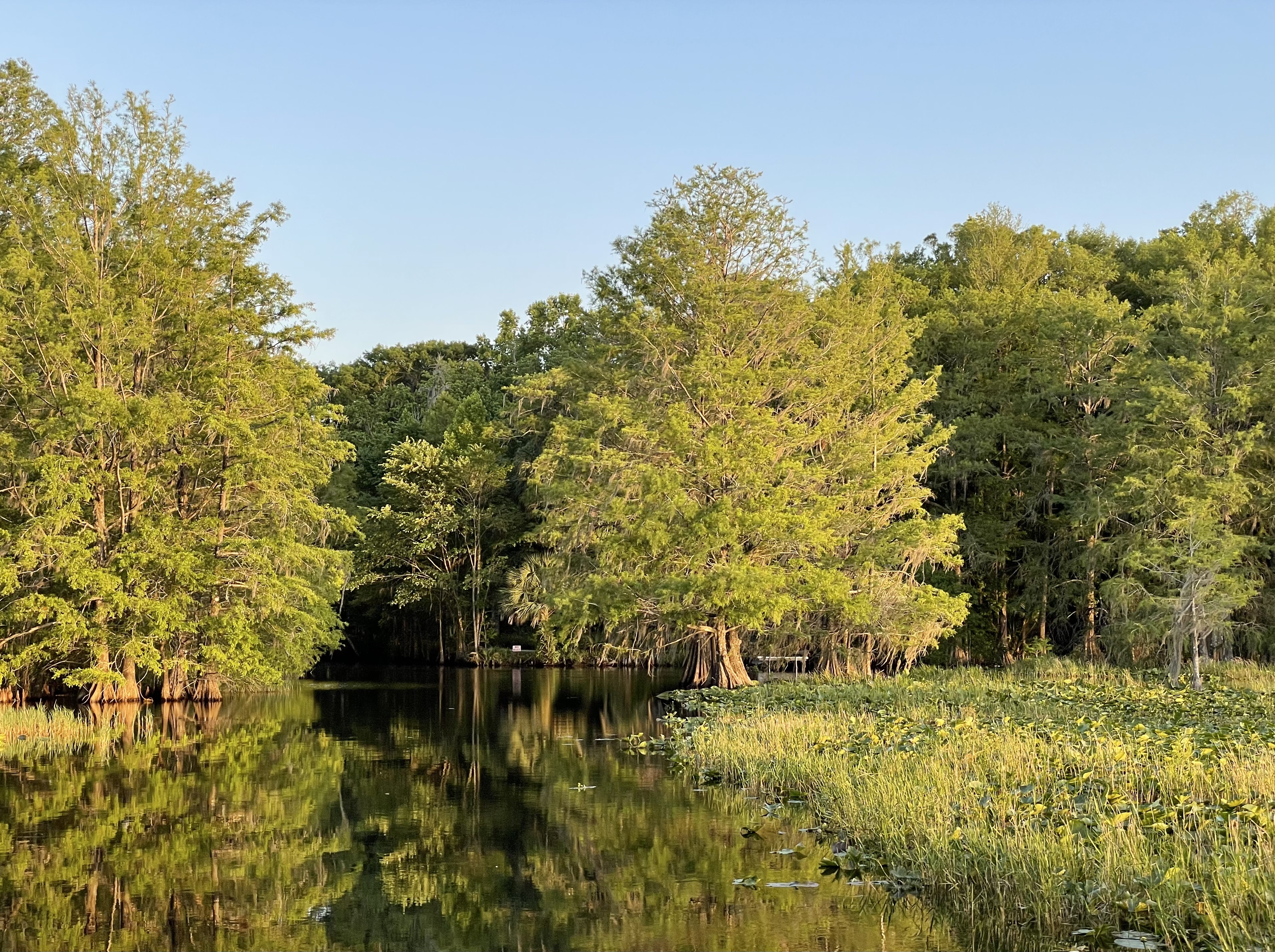 The day began with a vision of a golden moon rising and reflected in a nearby pond, with a parade of planets, Saturn, Mars, Venus, and Jupiter, in the predawn sky. Even shy Neptune reluctantly appeared through the telescope. The day ended with a quiet cruise on Lake Henderson in the soft light of the setting sun. What a day!