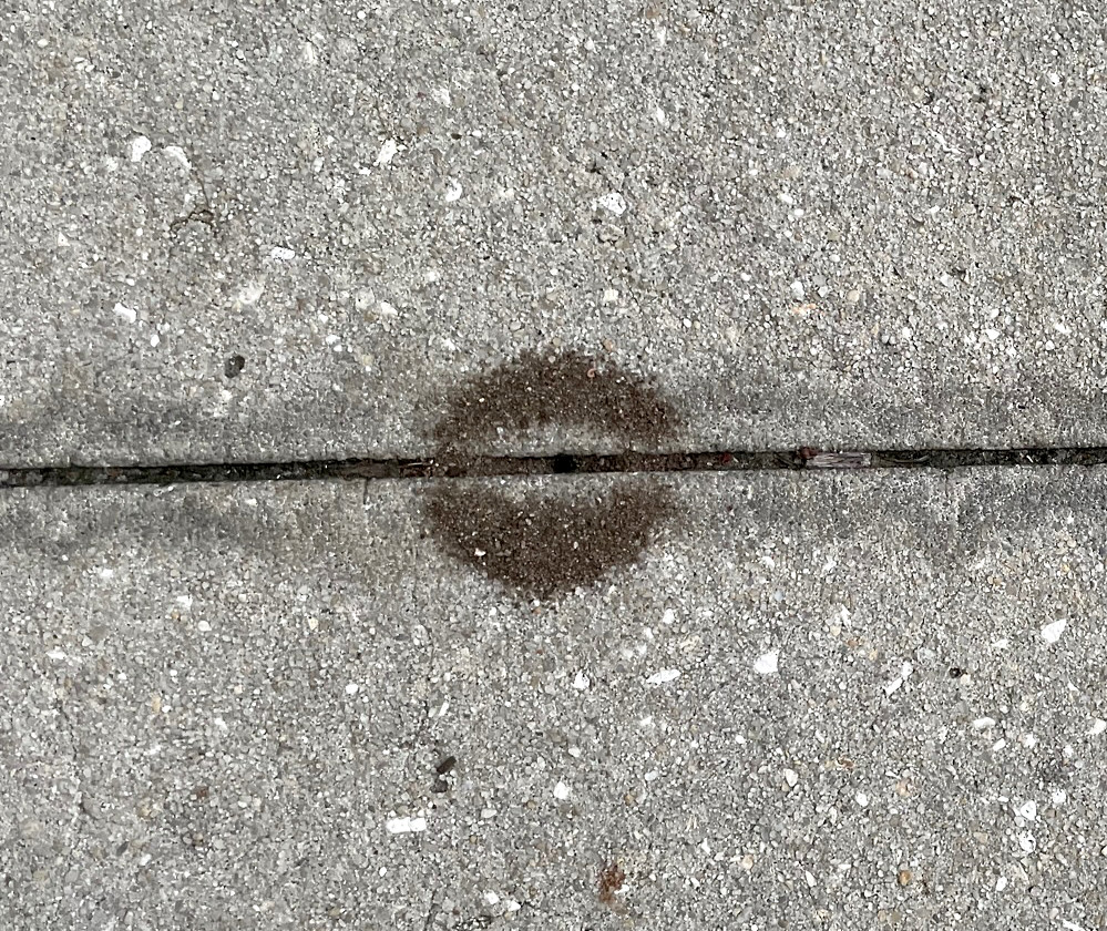 Well, this anthill looks sort of like lips, puckered up and ready to go. But ants don’t really have lips, they have mandibles that are sharp and venomous, which is why I really don’t want to kiss one.