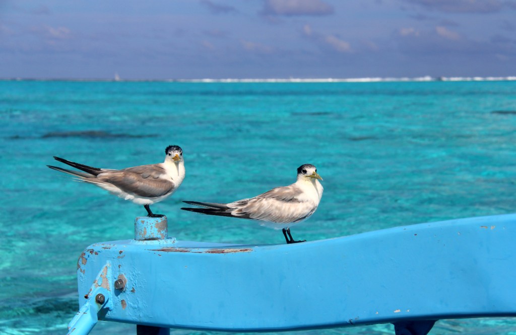 Yucky gray days are a great time to reminisce of brighter times in happy places. We were on a dolphin watching tour with Michael Poole in the lagoon around Moorea when these two terns landed on the railing and began to watch the tourists. They were probably hoping for a handout. Had we been fishing, they would have been in luck, for we would have been happy to do them a good turn by sharing fish remnants. Maybe next time.