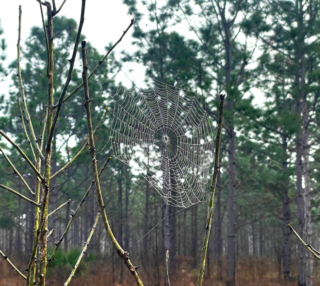 A cool, foggy morning mist left a coating of dew over the myriad of spider webs along the trail, and we couldn’t help but admire their handiwork. It gave the appearance of an arachnid dream catcher, and was enchanting even though I shudder to think what a spider’s dream might be like.