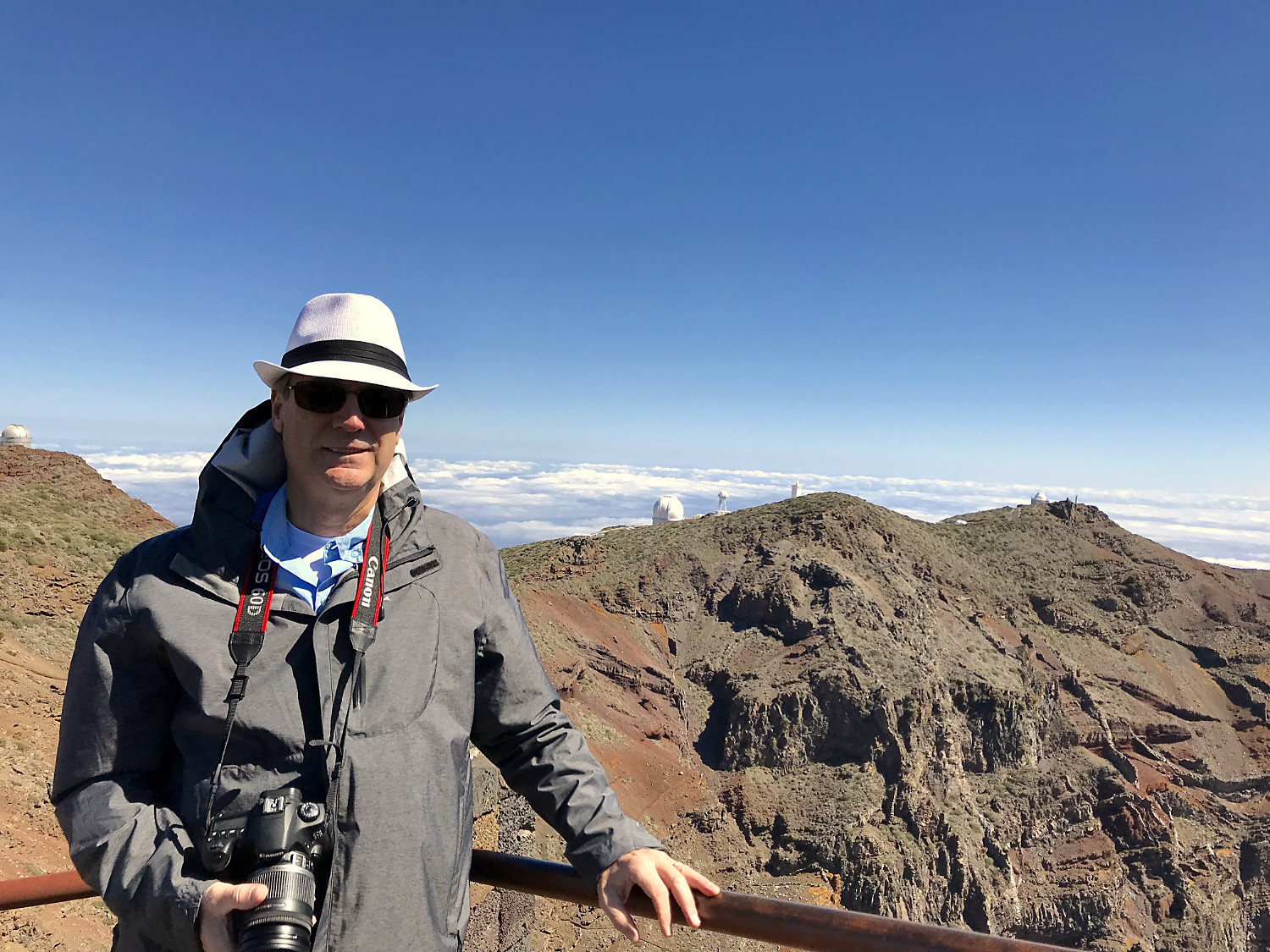 The post also detailed how quasars were discovered by the Isaac Newton Telescope on the Canary Island of La Palma sixty years ago. Wow! My wife, Fairy, and had I toured the Canary Islands five years ago and saw the observatories on La Palma. I checked my photos and found the one above with the observatory site visible in the background. The actual quasar discovery telescope is just out of view below the ridge on the right side of the image. The photo was taken April 28, 2018, five years exactly from the date of yesterday’s post. I think it was quite a coincidental quasar connection.