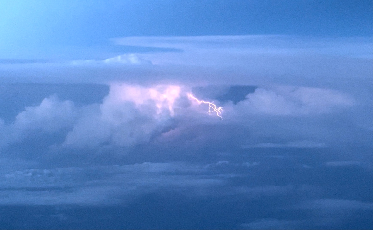 Thunderheads popped up here and there as we climbed out of the Orlando airport traffic area. The flight was routed between the most active storms, but could we see them flashing outside our window. It was a beautiful spectacle from a comfortable distance, and before long, we were above it all.