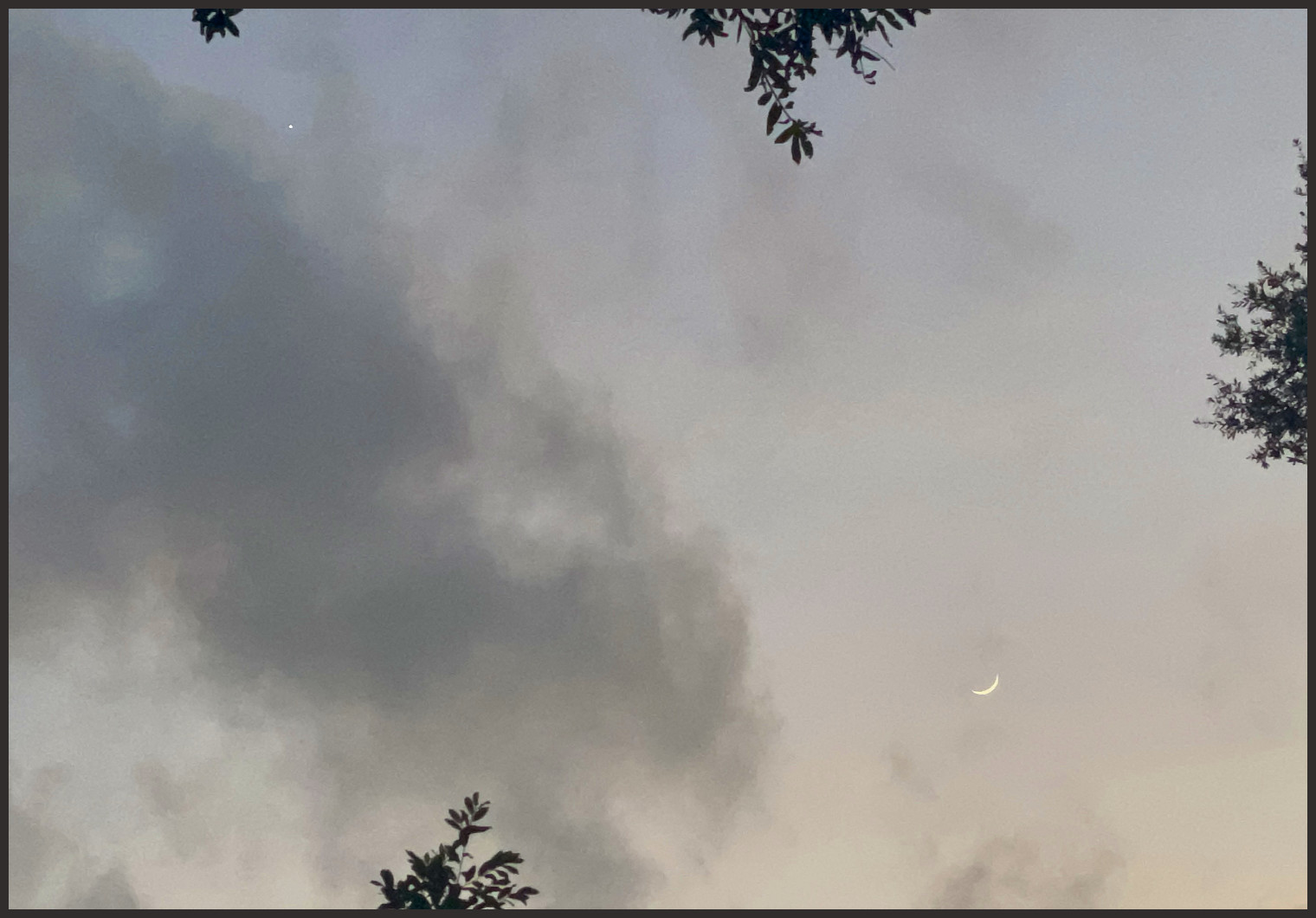 On the day before the summer solstice, storm clouds parted briefly to reveal a glimpse of the thin crescent moon and Venus hovering over the western horizon. Though rain drenched that day as well as the night the followed, this brief respite certainly brightened the spirits.