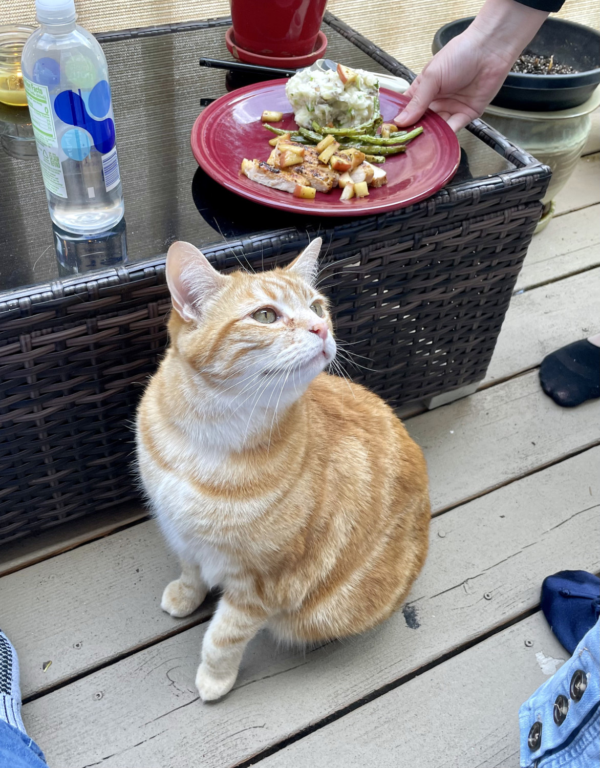While visiting family, I was looking for food for the cat, but could not locate where it was kept. So, hoping that she would show me where it was, I asked my young granddaughter, “What to you feed the cat?” She promptly replied, “That’s easy, grandpa, cat food!” After a good laugh, she pointed out its container. Of course, I didn’t dish it up on a plate like in the picture above, though the cat would have gladly nibbled at that too.