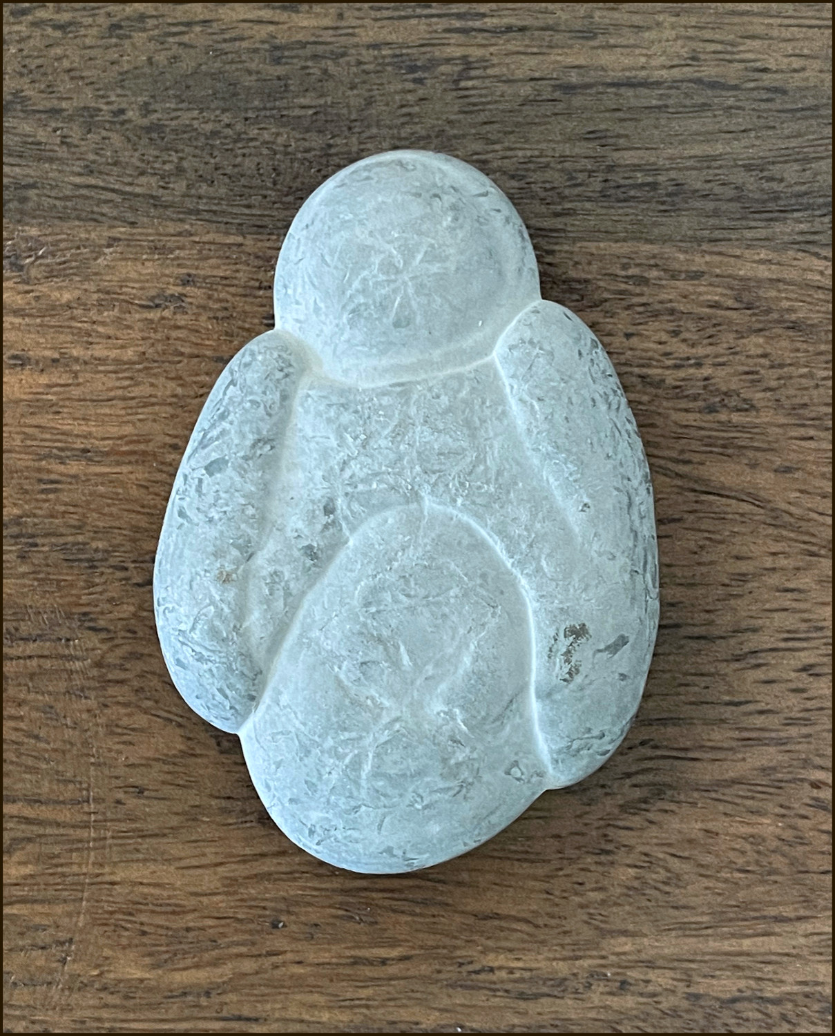 Once upon a time this fairy stone was buried, soft sediment that was hardened by crystalization of calcium carbonate to form a “concretion.” Such strange words aside, it just means that silt, mud, or something else was transformed over time into a beautiful and captivating form.