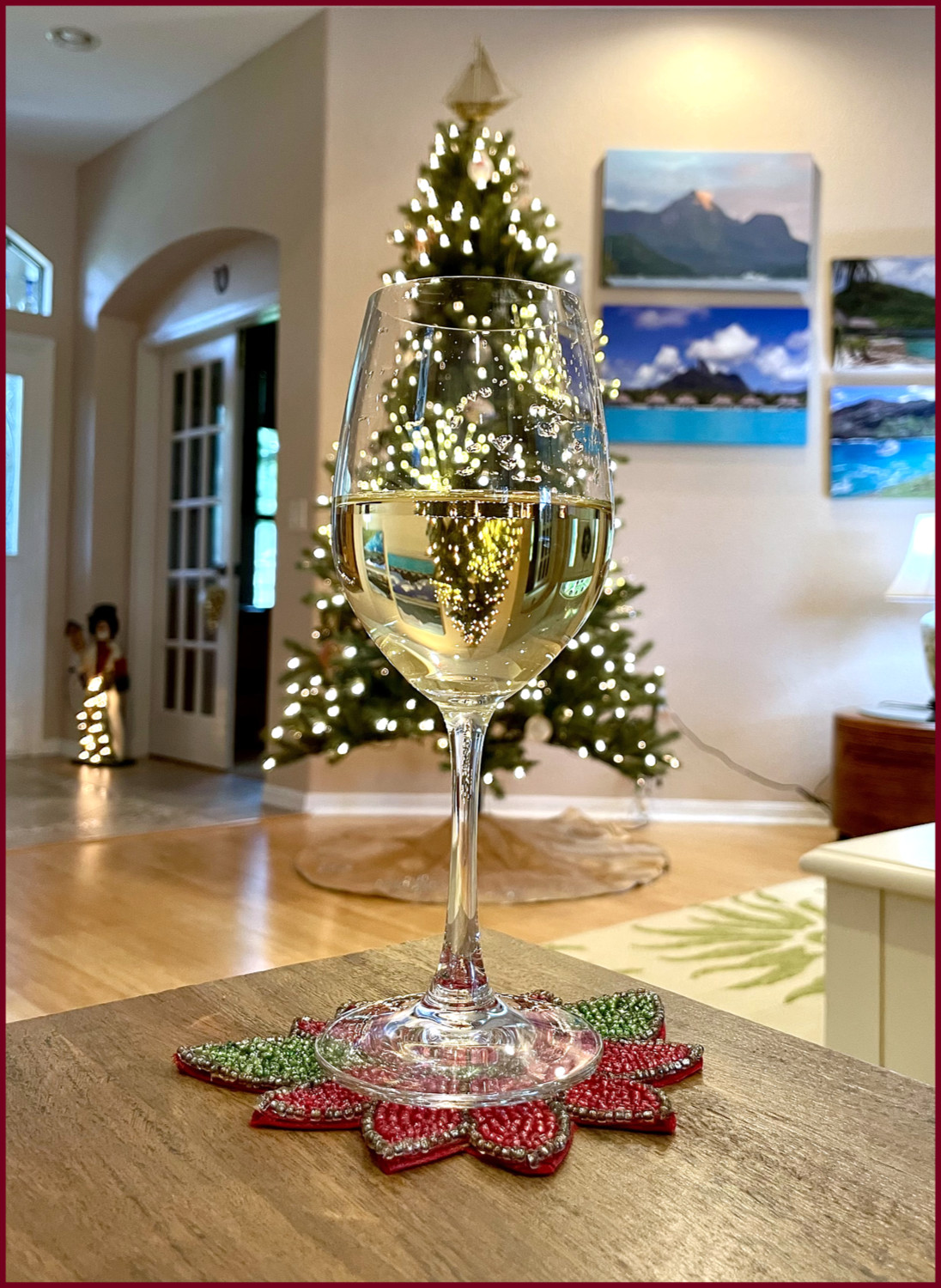 While decorating the Christmas tree recently, we decided to have a glass of Sidereus chardonnay as incentive. After every couple of orniments were placed, another sip was taken to urge us on. When all of the orniments were up, the wine was down and there was happiness all around.