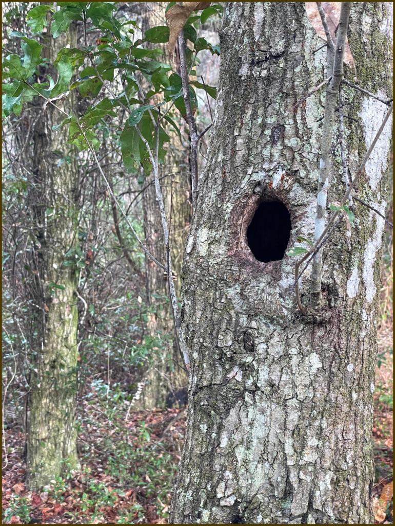 Along a wooded trail a hole in a tree appeared and tempted the curious to discover what may lie within. Is it just a hollow in a tree, or is it a home for some unseen creature, perhaps a lizard, a toad, or a squirrel. I doubt that a bird would use it for a nest so low to the ground. Perhaps if one just took a peek, or felt within with a finger. But wait, what if it housed a wasp or a snake, or a large spider that would not like an uninvited guest?