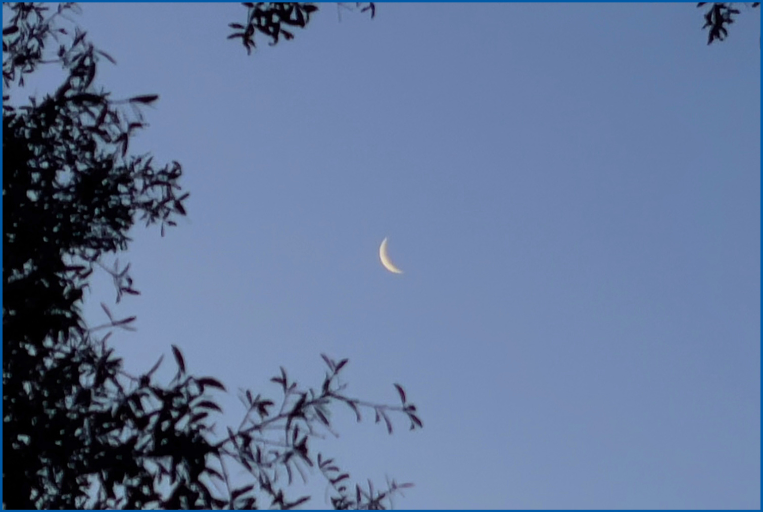 The waning crescent moon graced the February morning sky as it faced the sun which was soon to rise. Even though the moon rose well before the sun, it was still low to the horizon, following the sun’s own path through the winter sky.