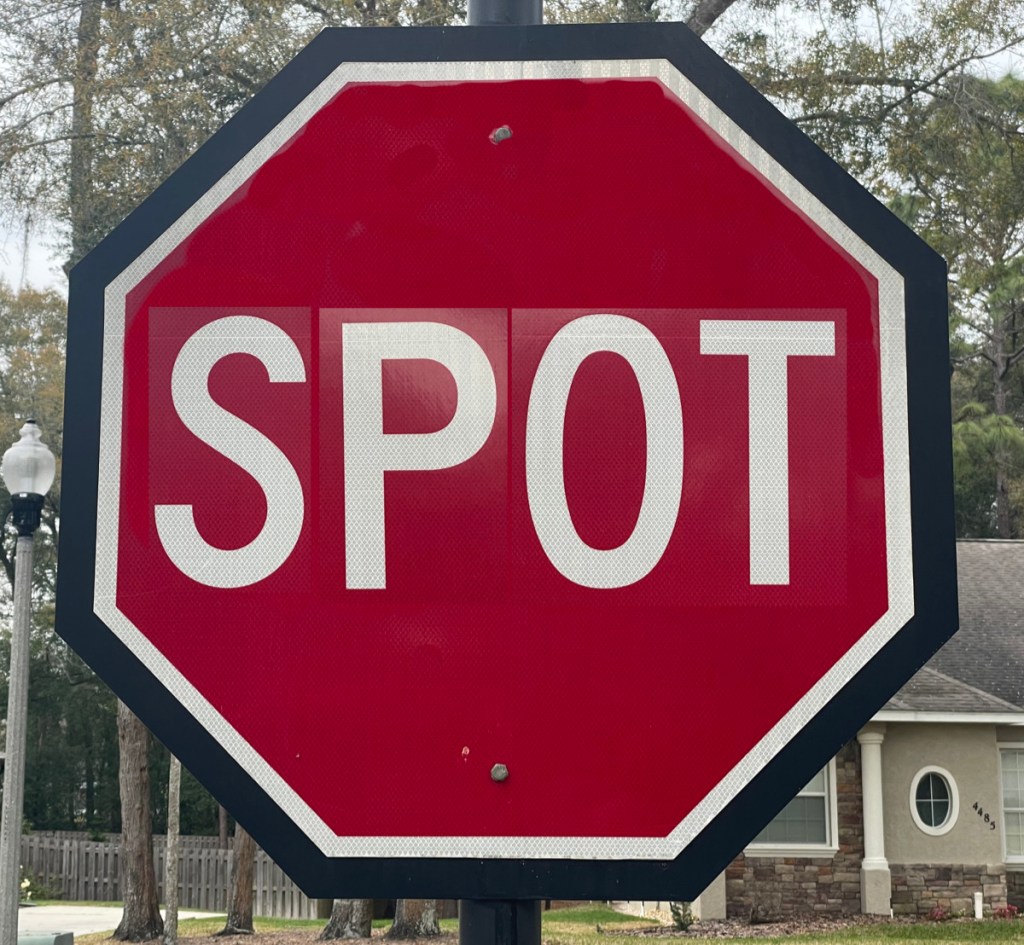 That got me thinking of various words with letter combinations that could be rearranged to spell other words. A few four letter combinations can spell out many different words as seen in the “shopped” photos above. Sometimes on a long drive, mentally rearranging letters on signs into new words can be entertaining as long as I remember to actually stop when I see a stop sign, rather than trying to rearrange its letters.