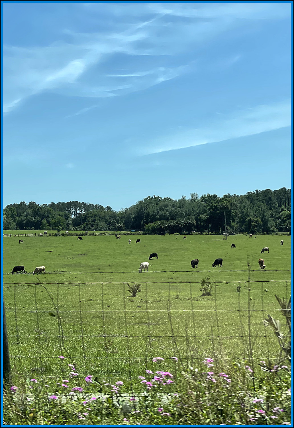 Warm spring weather and ample rain have produced lush green pastures perfect for grazing. Content cows mosey along not even thinking of the other side of the fence for they are already where they want to be.