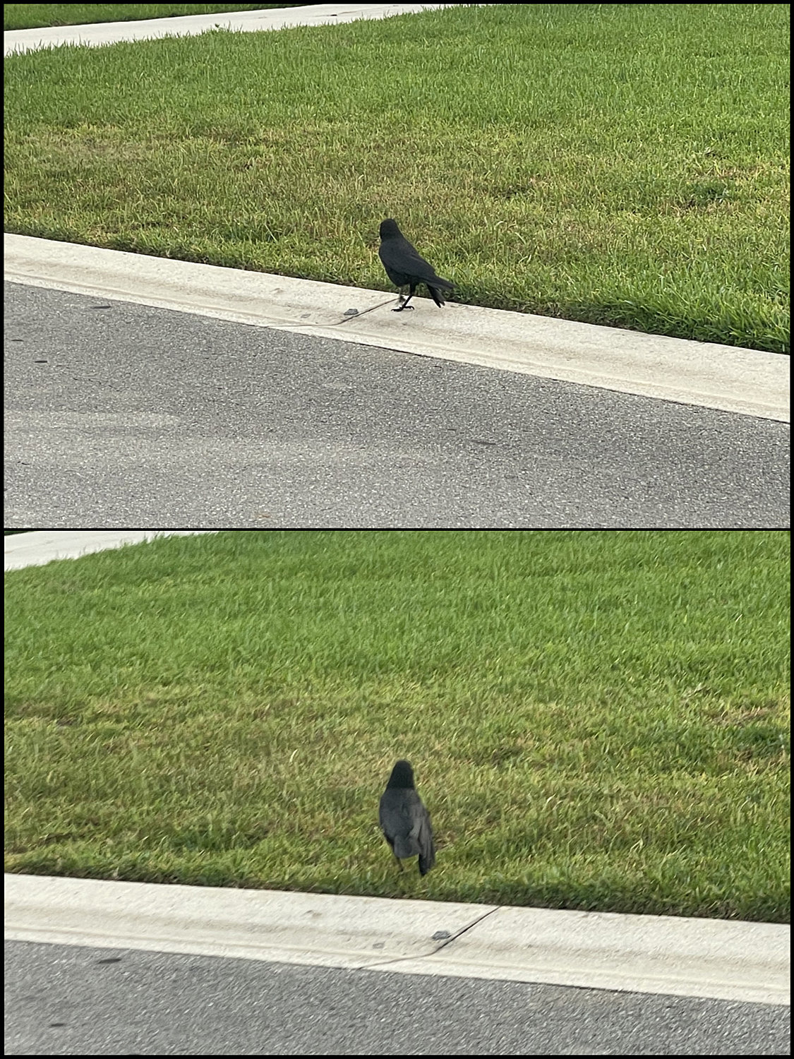 Nearly a year ago this crow with its injured right wing was featured in this blog (see: https://eskildoodle.com/2023/07/30/on-a-wing-and-a-prayer/). Over the winter it seemed to have disappeared and we assumed that its infirmity had finally led to its demise. Then, to our amazement and delight, it recently reappeared, no worse than before. As usual, it crow-hopped away, avoiding flight when we passed by. For almost three years now, not only has it survived and even thrived in its adversity, it has earned our respect.
