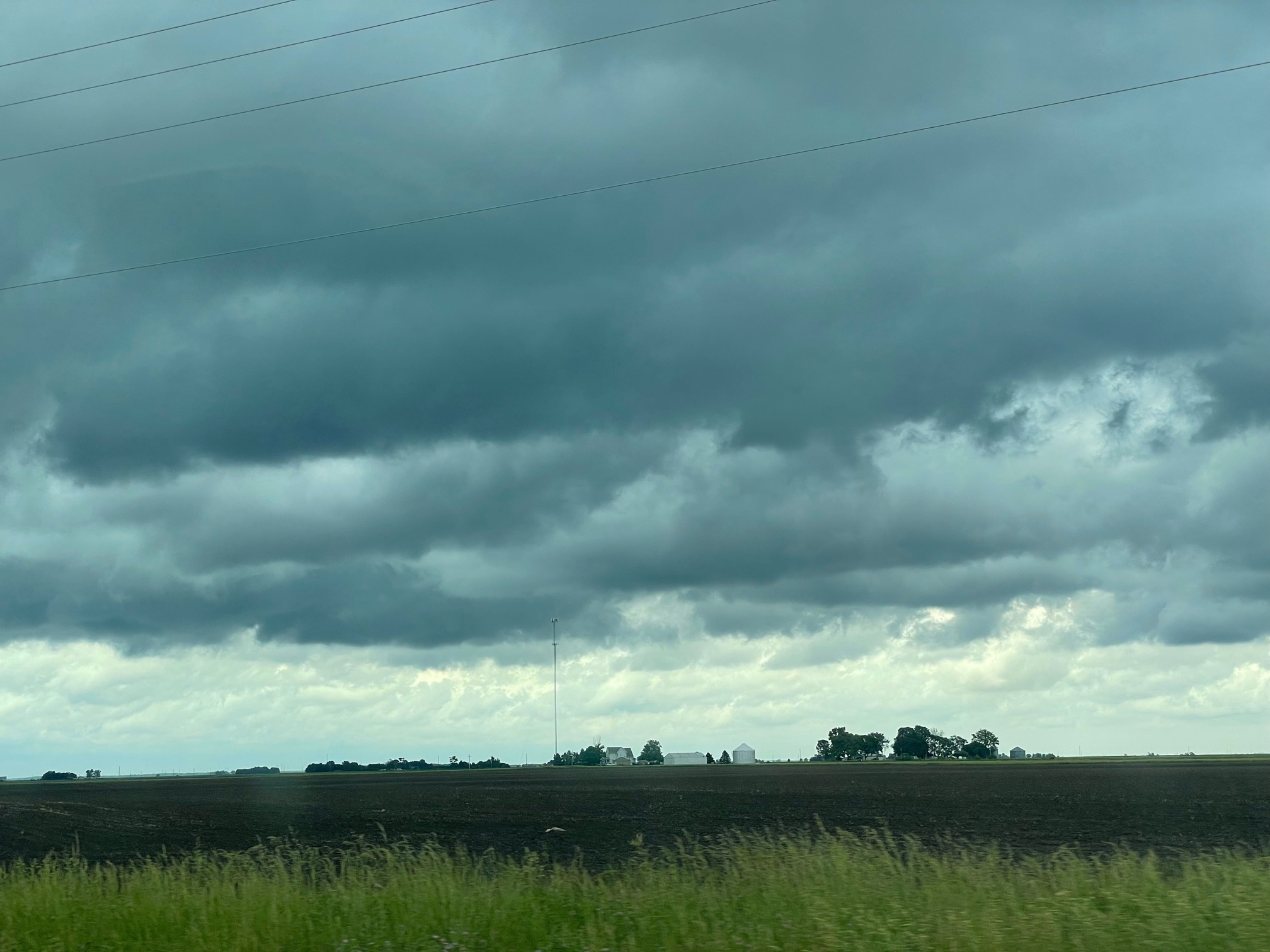 Dark clouds drop light rain over black soil to sprout green crops that will feed the hungry. Thank you Good Earth!