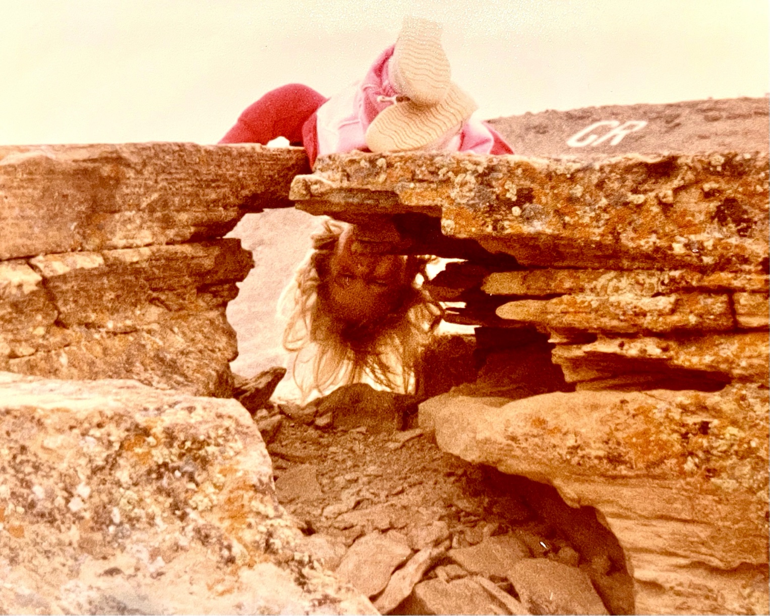 Many years ago, never mind how many, father and daughter huffed and puffed their way up a steep ridge to the top of its crest just to enjoy the view and play among the rocks. Dad got a silly idea, and daughter willingly agreed and giggled as the first photo was taken. Yesterday he repeated the trip alone to revisit cherished memories and found the same spot. Again he knew that a photo was in order. It was a great experience, but how much better it could have been if “Little Bug” had come along.
