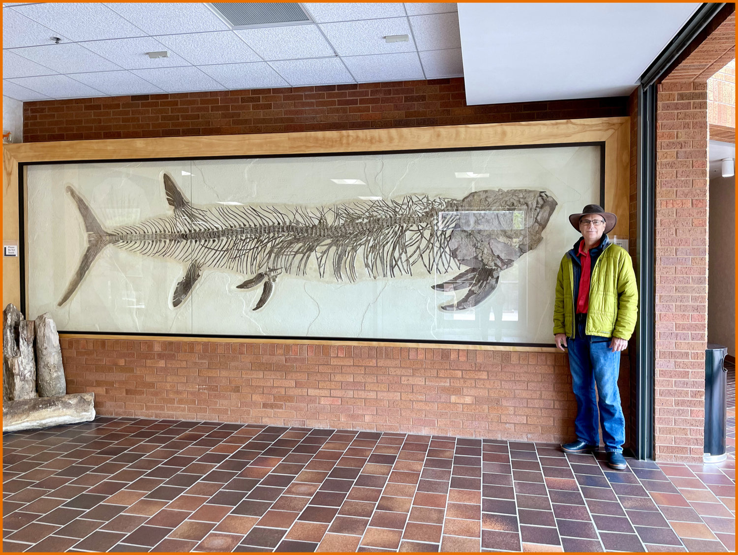 Actually, I never caught this fish, but during the 1980’s I donated for its display in honor of professor Charlie Love, geologist and anthropologist. It was the first of several remarkable fossils that Charlie commissioned to be displayed throughout the college and still stands proudly 40 years later.