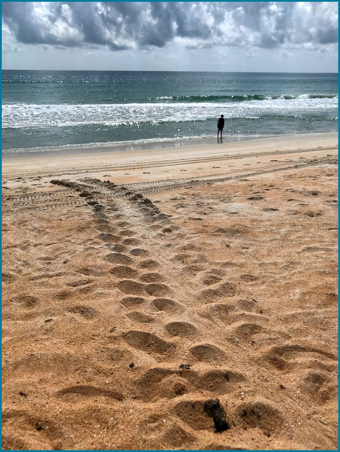 A few years ago we spent some time at Flagler Beach, Florida. One morning we arose to discover that a turtle had laid her eggs in the beach during the night. The nest had been marked by conservation volunteers, and we kept a respectful distance from it. While these tracks were eventually erased by winds and waves, their presence lingers in the form of the new life that emerged after the appropriate incubation period. The young that survive to adulthood will someday return to deposit their eggs in the sand and repeat the cycle as their species has for eons before we ever came on the scene. May that cycle continue to be repeated for eons to come.