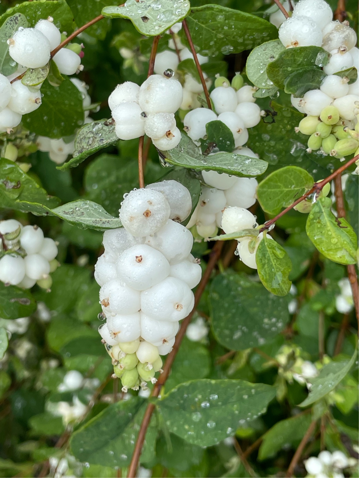 Yes, snowberries really exist! I didn’t know that until our recent walk along the Fernhill Wetlands when they appeared along the trail and brightened our day. Even though they were already known to plant lovers and botanists, it was still exciting to discover them on my own.
