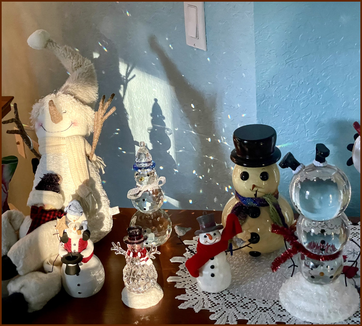 Unlike their outdoor cousins, these snowmen enjoy warmth, and especially the sunshine. They like to cast sparkles of sunlight about like glittering snowflakes.