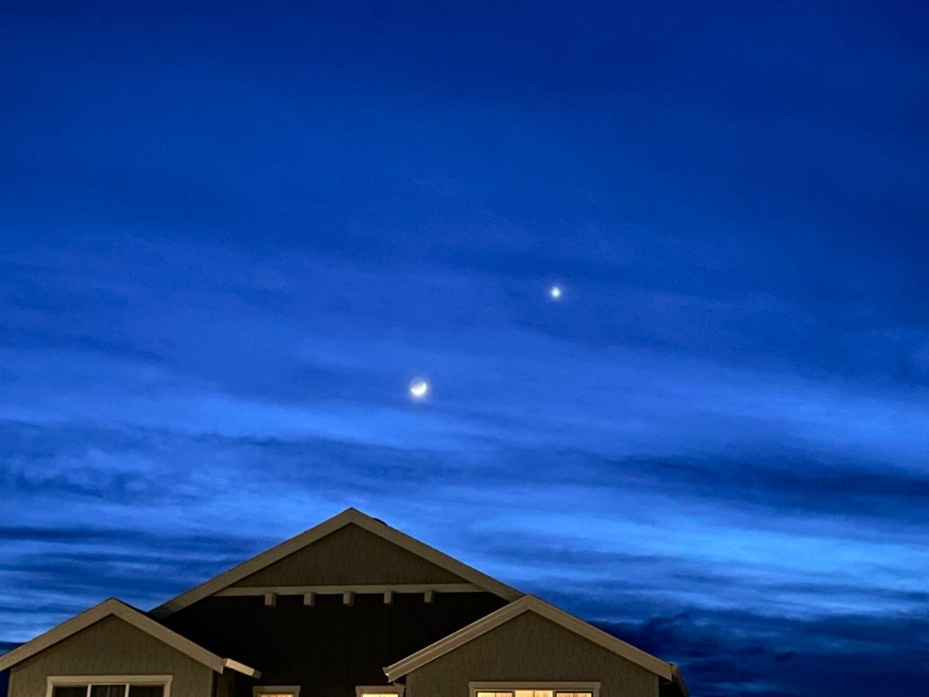 Both the Moon and Venus graced the evening sky Sunday evening, and through a telescope Venus appeared as a thin crescent just like the Moon, only thinner. This is the last time that they will both be seen in the evening sky together this year. By March 22, Venus will be aligned with the Sun and no longer be visible in the evening sky. If you get a chance, catch a glimpse of it through binoculars or a small telescope, to see the amazingly thin crescent of Venus.