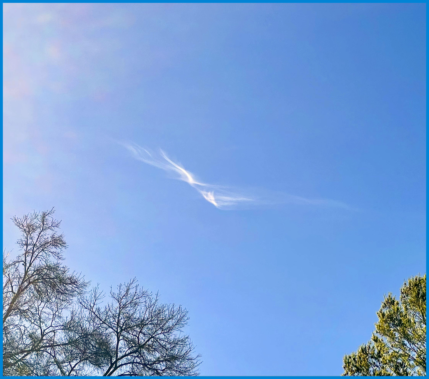 Cirrus clouds often herald a change in the weather. This wispy cloud seems to dance across the blue, morning sky like a sprit celebrating springtime.
