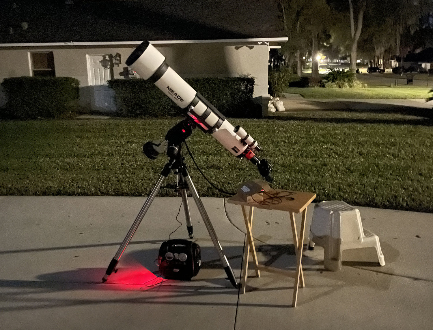 The photos were taken from my driveway using six-inch diameter refractor telescope adapted as a telephoto lens for a Cannon 60D digital camera. It is shown here near the end of the eclipse. Wow! What a night!