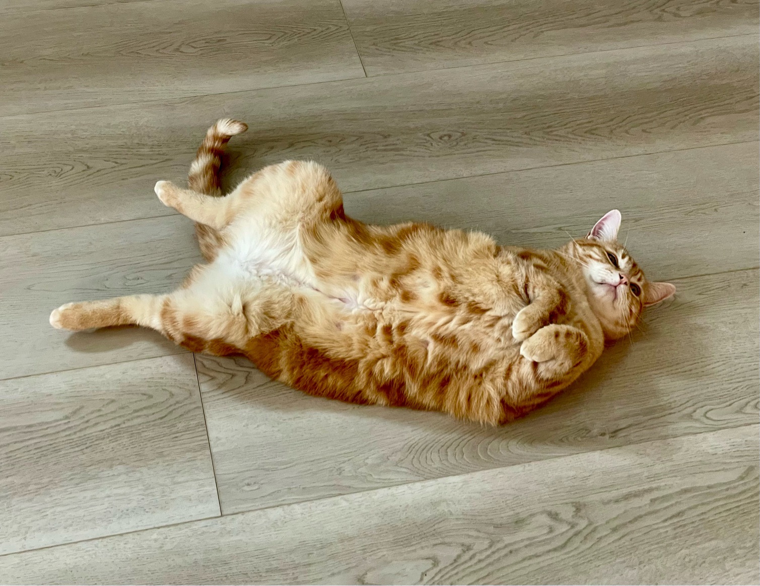 With never a care, he lies everywhere, leaving behind bits of long, orange hair. Wear dark clothes and you best beware, he’ll hop up on your lap and shed his hair there. Happy April Fool’s Day.