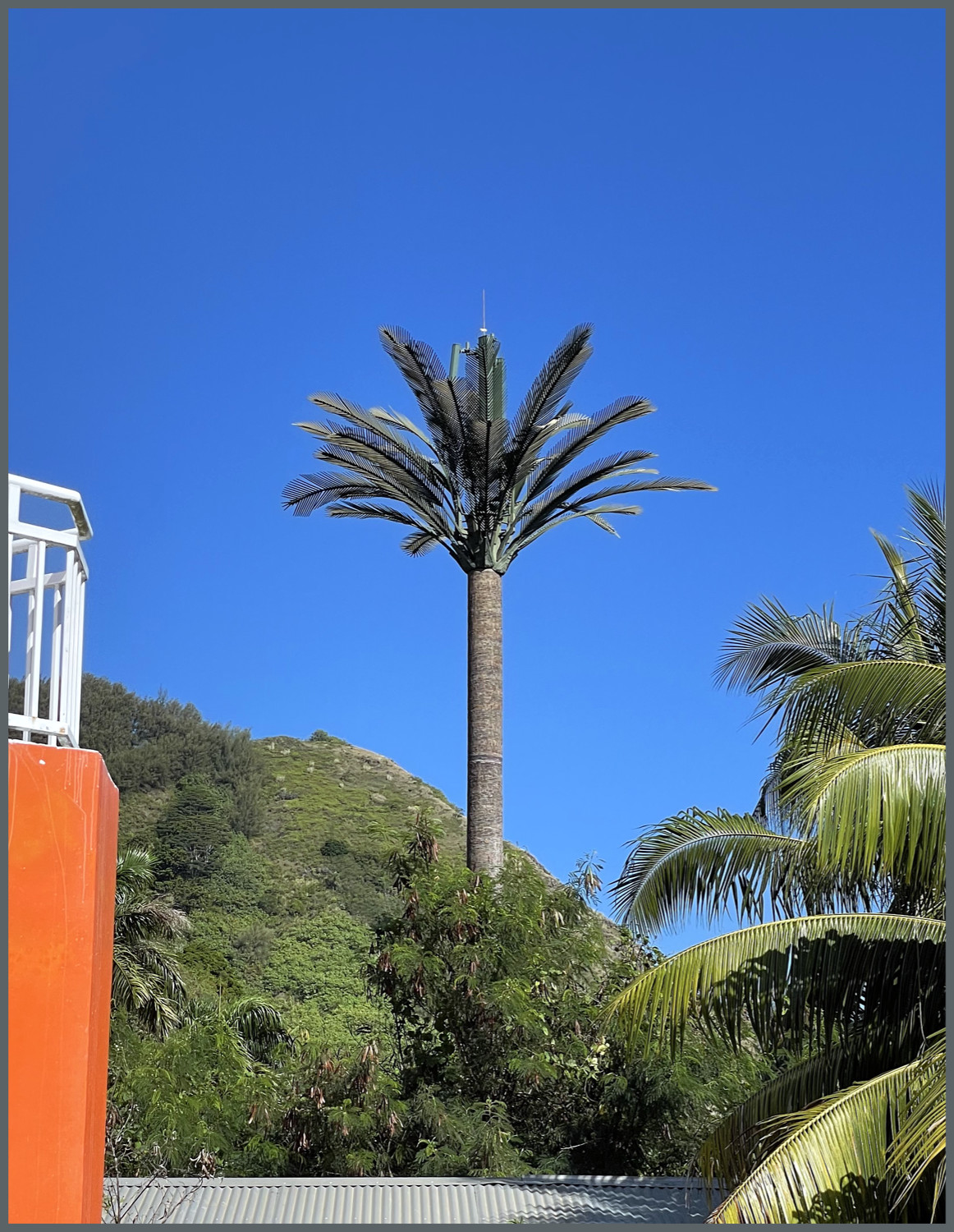 Jimmy heard it on the “coconut telegraph,” but we heard our messages on what I refer to as the “coconut telephone.” Many cell towers in French Polynesia are disguised as palm trees to mute their visual effect on the scenery. Not only does it blend in better with the surroundings, there’s no worries about coconuts falling on your head as you pass under them.