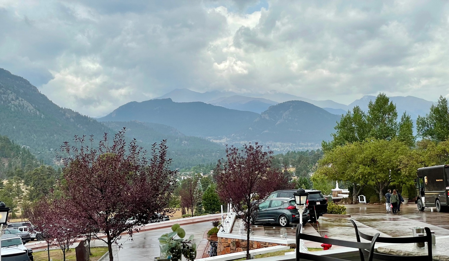 We enjoyed panoramic views of the mountains for the past 12 days, clear, crisp, and full of memories. The day before departure, clouds moved in and, ragged clouds hid the summit of Longs Peak though they did reveal the upper reaches of Mount Meeker. In a different direction, only one of the Twin Sisters was visible, its head rising above a cloud that it seemed to wear like a shawl.