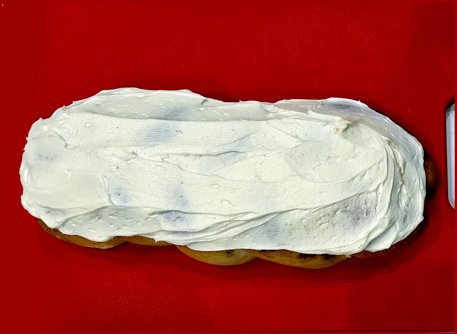 Mom has been making this fabulous dessert bread since she was nine years old, and Daughter came to visit recently to learn to make it and carry on the tradition. The plan had been for Daughter to take this one home in her luggage (without the frosting), but other items crowded it out.