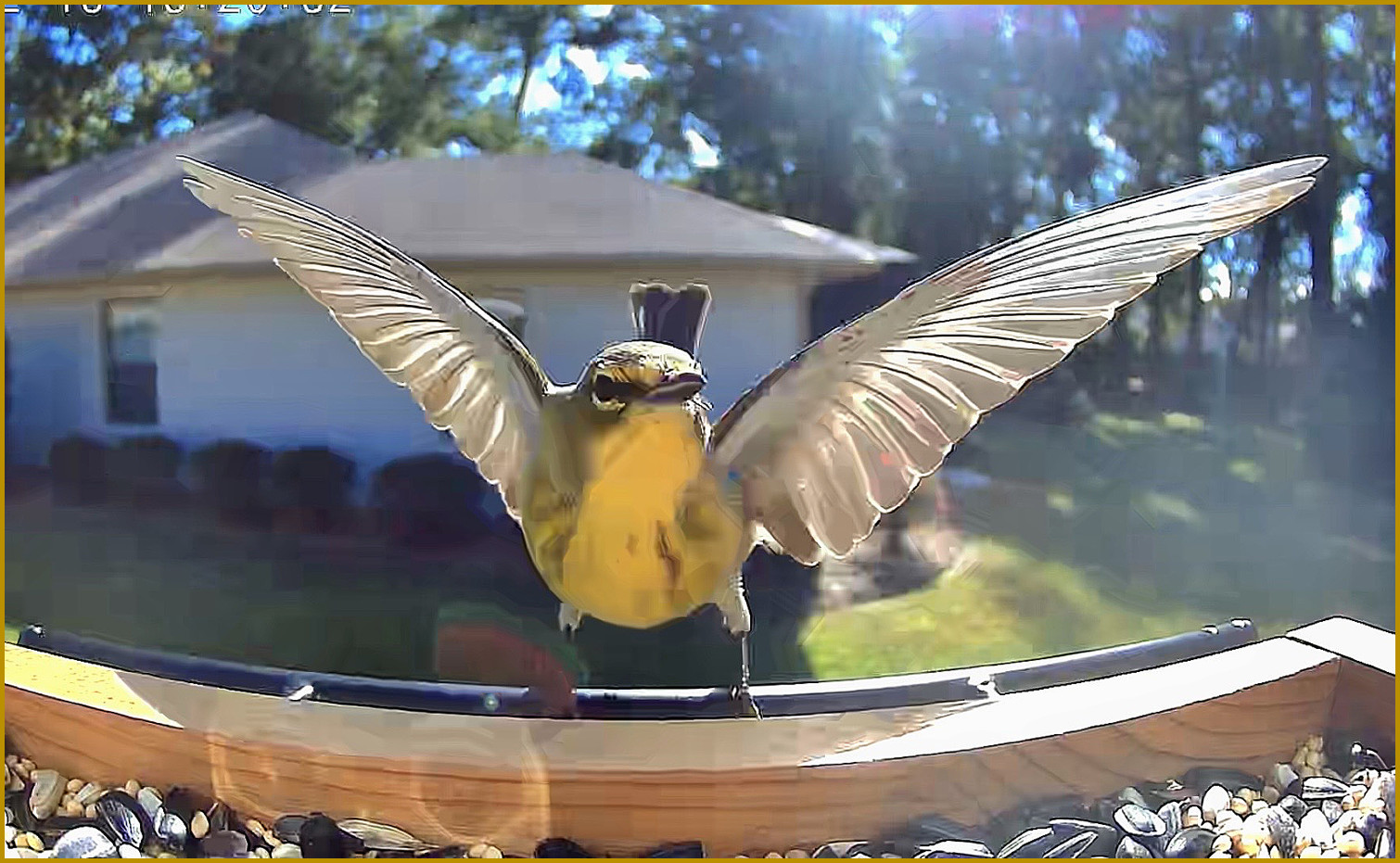 The little pine warbler flapped its wings just one more time to generate the lift and drag needed to bring it to a stop precisely upon the bird feeder stand; it is a marvel of natural engineering and a true master of the physics of flight.