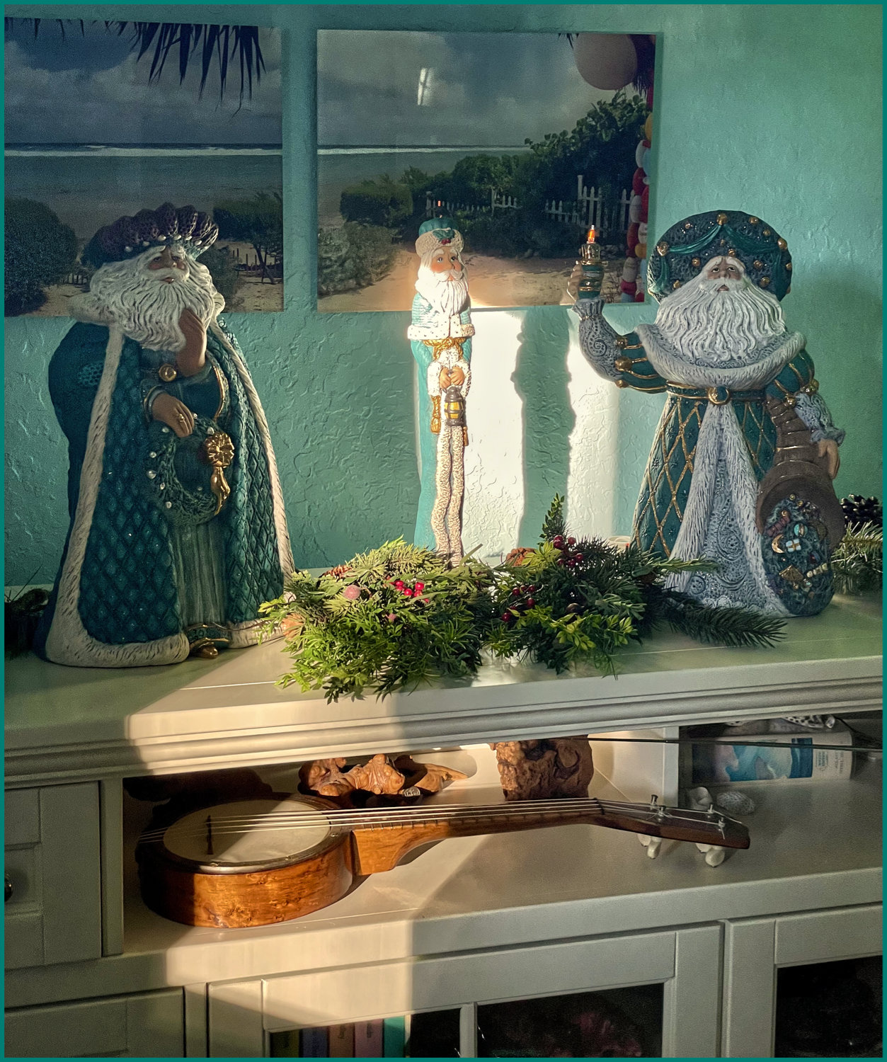 It’s not yet Christmas, and it isn’t night, but all is calm and small is bright. Fingers of sunlight touch the slender Christmas Spirit figurine and also caresses the frame of a 100-year-old “no-name” banjolele. In keeping with the timeless spirit of the season, the sun’s rays honor even the small and the nameless.