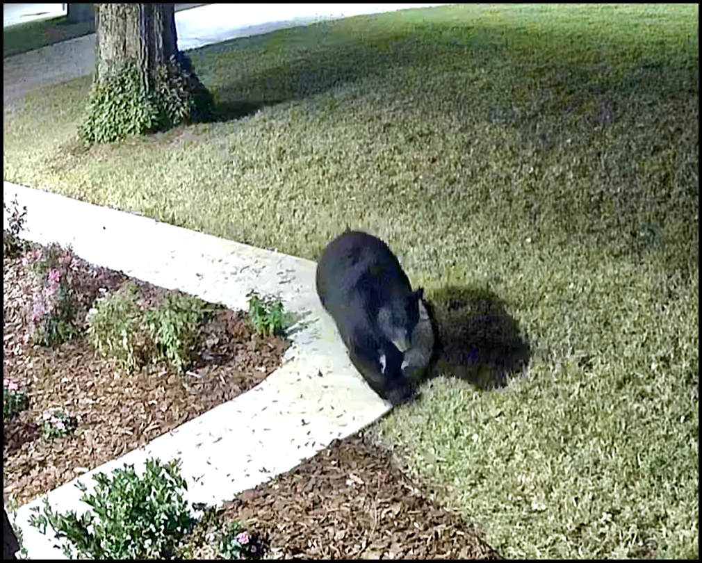 Bears are known to frequent in our neighborhood, which is located adjacent to the Cross Florida Greenway. Calls to animal control in the past have been met with admonitions that the bears lived here before we did, so we will have to learn to get along, and they offered advice on how to avoid conflicts. Well, let’s just hope that works!