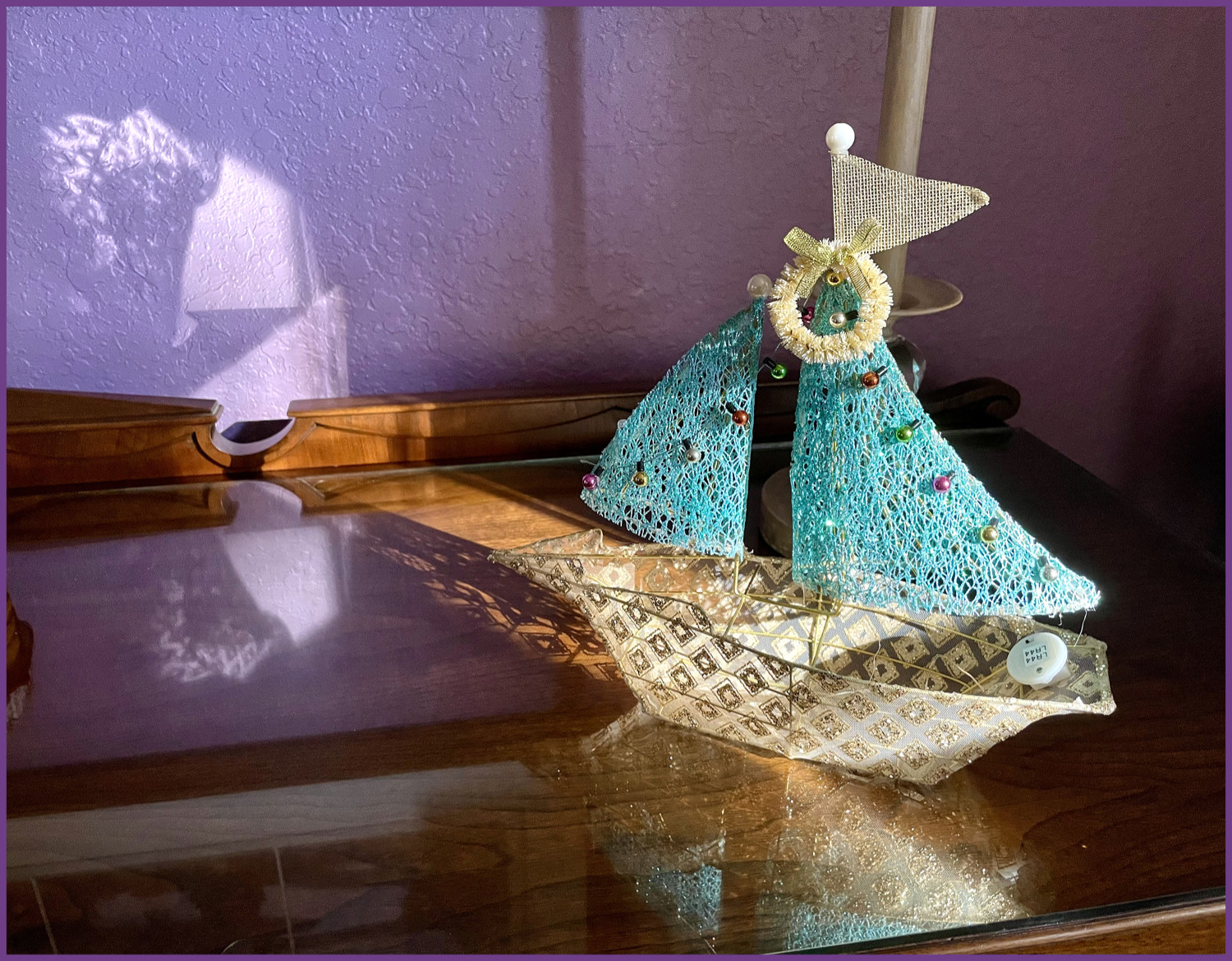 One of the last of the holiday decorations was seen sailing with the sunrise, and heading towards its safe harbor until the next holiday season.