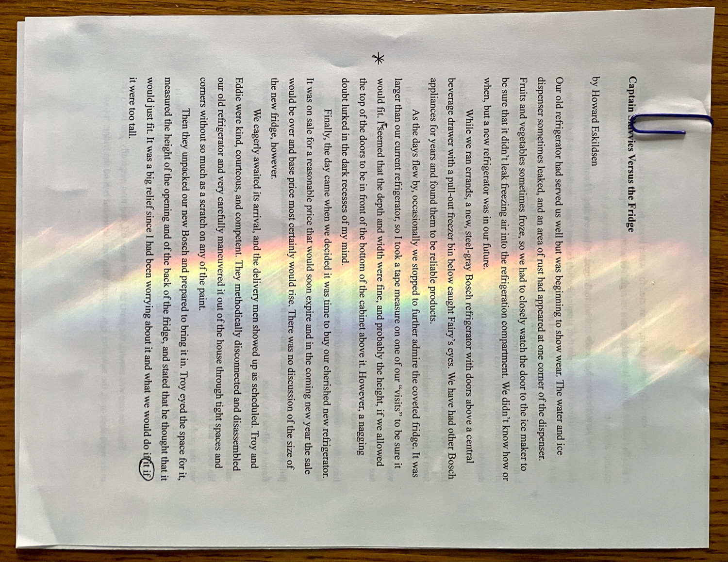 Refracted light from rising rays of the sun momentarily chanced to color the page of another story to being put into words, and words, like a prism, can bend the light of life into its true, amazing colors.