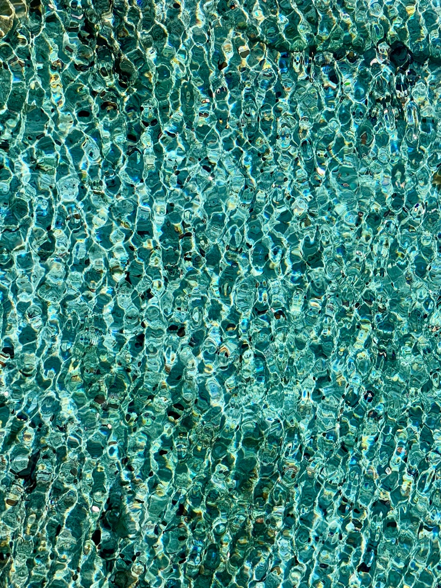 Playful winds stirred ripples across clear waters in a simulated spring-fed steam at Disney Springs with coins on the bottom sparkling in the sunlight. The stream may be artificial, but the colors are real.