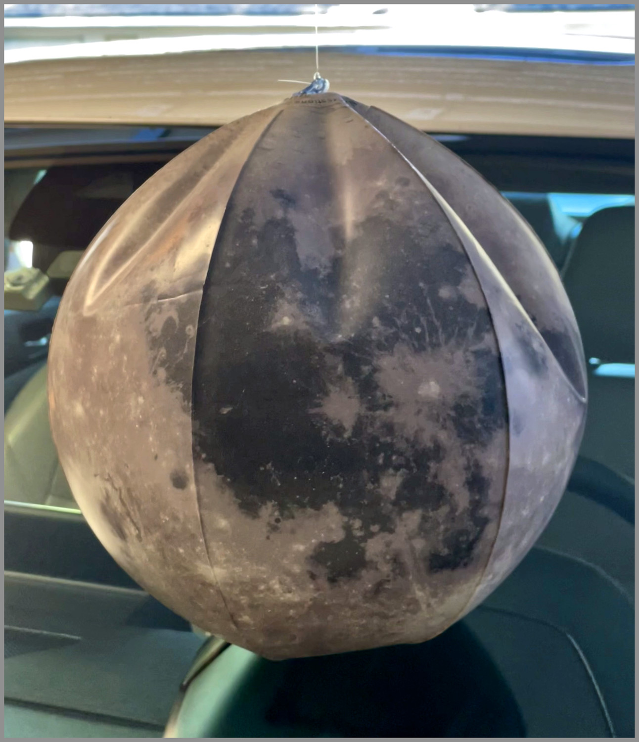 This sad little inflatable Moon globe in the garage was round as a beach ball a few days ago when the temperature was warm, but now that it’s cold, this Moon is a shriveled shadow of itself. Why?