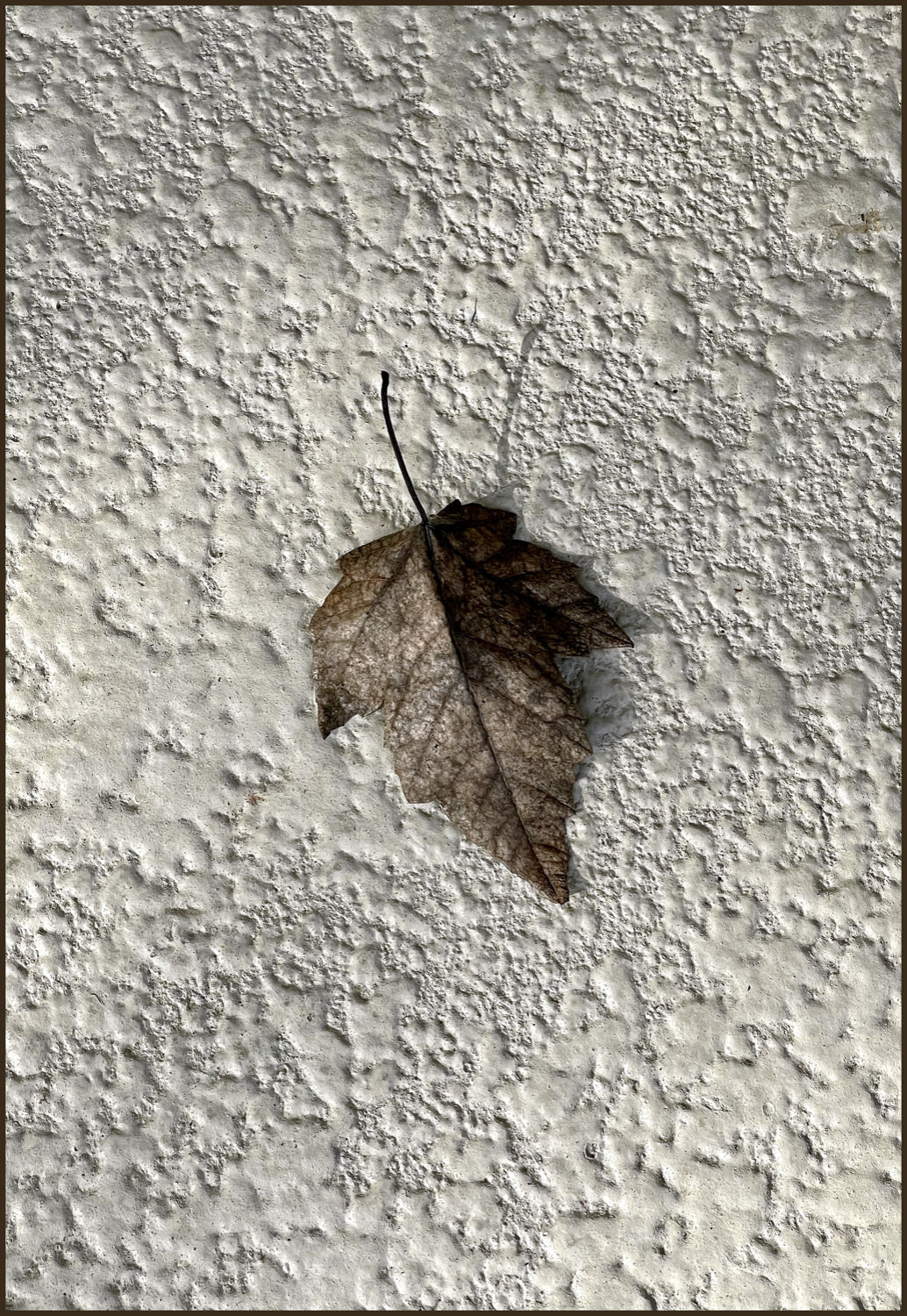 The sidewalk had been blown clear of debris, and moments later playful, swirling winds swept this dry leaf back onto the walk. Though its summer green and its autumn colors have all faded to drab brown as seen above, it still holds its own poetic beauty. It is in the process of being recycled so that its nutrients can be used by other plants to create more vibrant leaves in the spring by the very same process that brought this leaf into being.