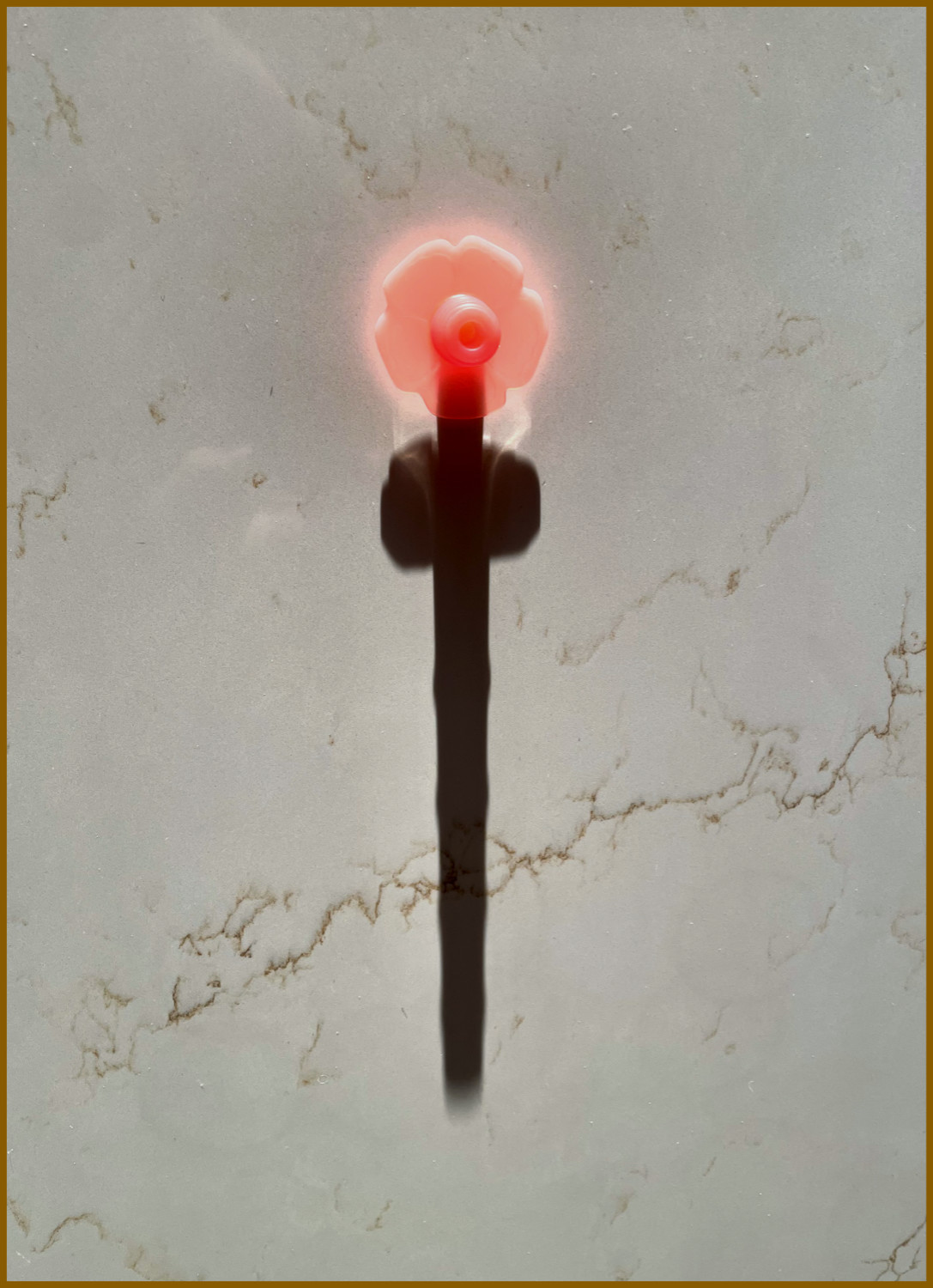 It looked like neither a bottle stopper nor a shadow at first glance, but rather a figure suspended in space. Could it be a flower, a microphone, a dagger, or a candle? Other objects such as the proboscis of a very large mosquito also came to mind as I looked at this through my Rorschach lens.