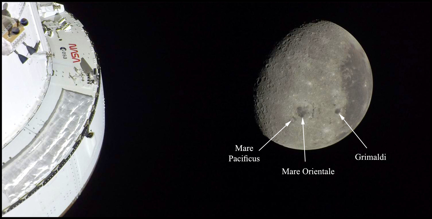 So, the far side of the moon begins somewhere between Grimaldi and Mare Orientale, and, as can be seen in the top photo, it was only partly illuminated as the astronauts flew around the moon. Still what a sight to behold and what a strange feeling it must have been to see the tiny earth (not visible in this image) from their viewpoint which was farther from earth than humans had ever ventured before.