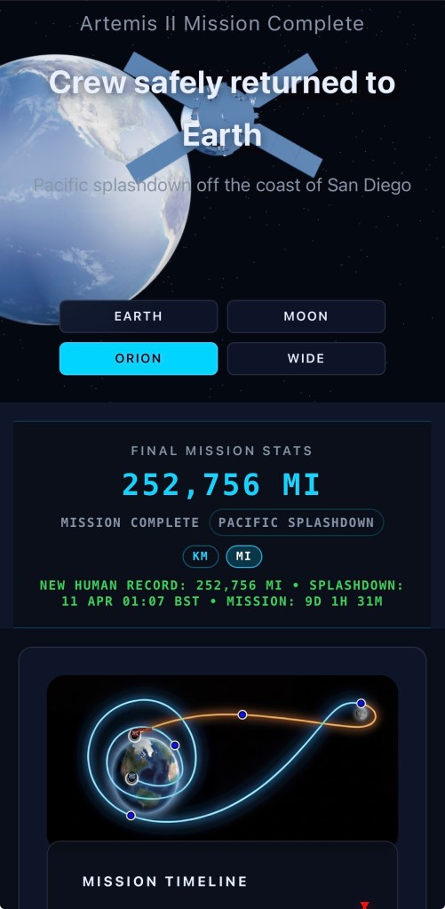 Reid Wiseman, Victor Glover, Christina Koch, and Jeremy Hansen have been there and back. They set records for the farthest distance from earth and for the fastest speed that humans have ever traveled, and then they safely returned on target and on time. I’m “over the moon!”