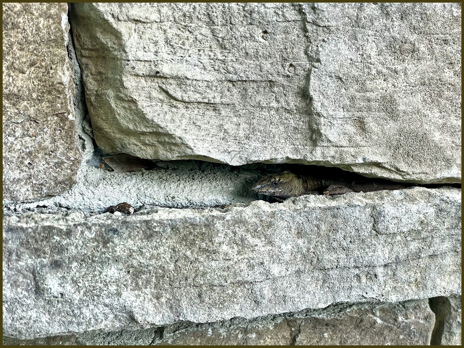 Watching warily from its recess in the rocks, it gave the appearance an ancient ancestor whose fossil form had left the stone and returned to the living; a fitting tribute to its ancient heritage, to the tenacity of life and how precious it is.