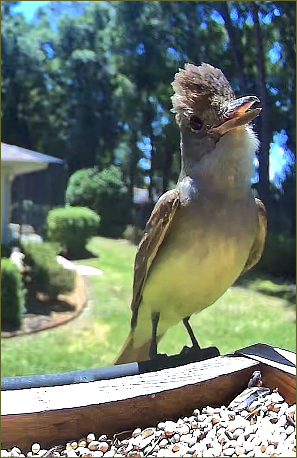 It appears more like it has been to a beauty salon than to a birdfeeder, as if it just had a fancy rinse and blowout. My oh my, aren’t we proud?