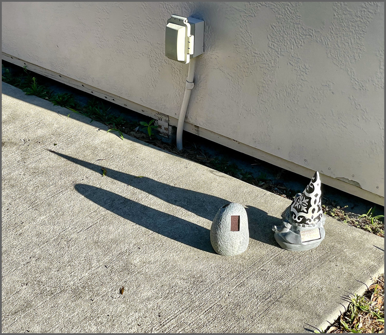 Part of my morning chores includes putting the Sir Gnome and his faithful friend, Poochie, out to pasture to graze. They don’t need grass or hay, however, they simply feed on the sun’s rays to power them up for their nightly duties.